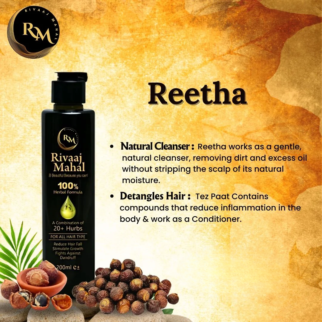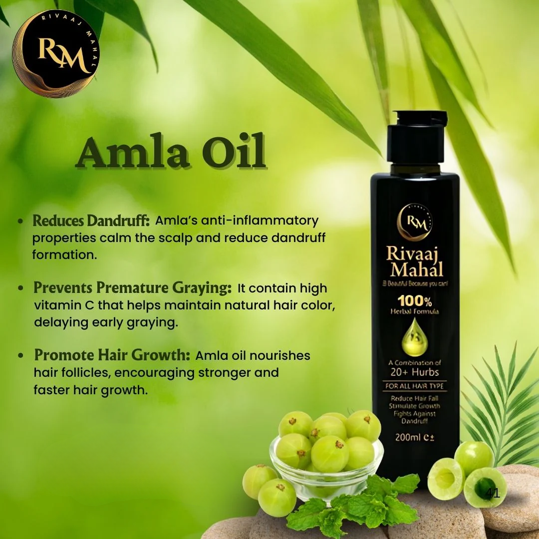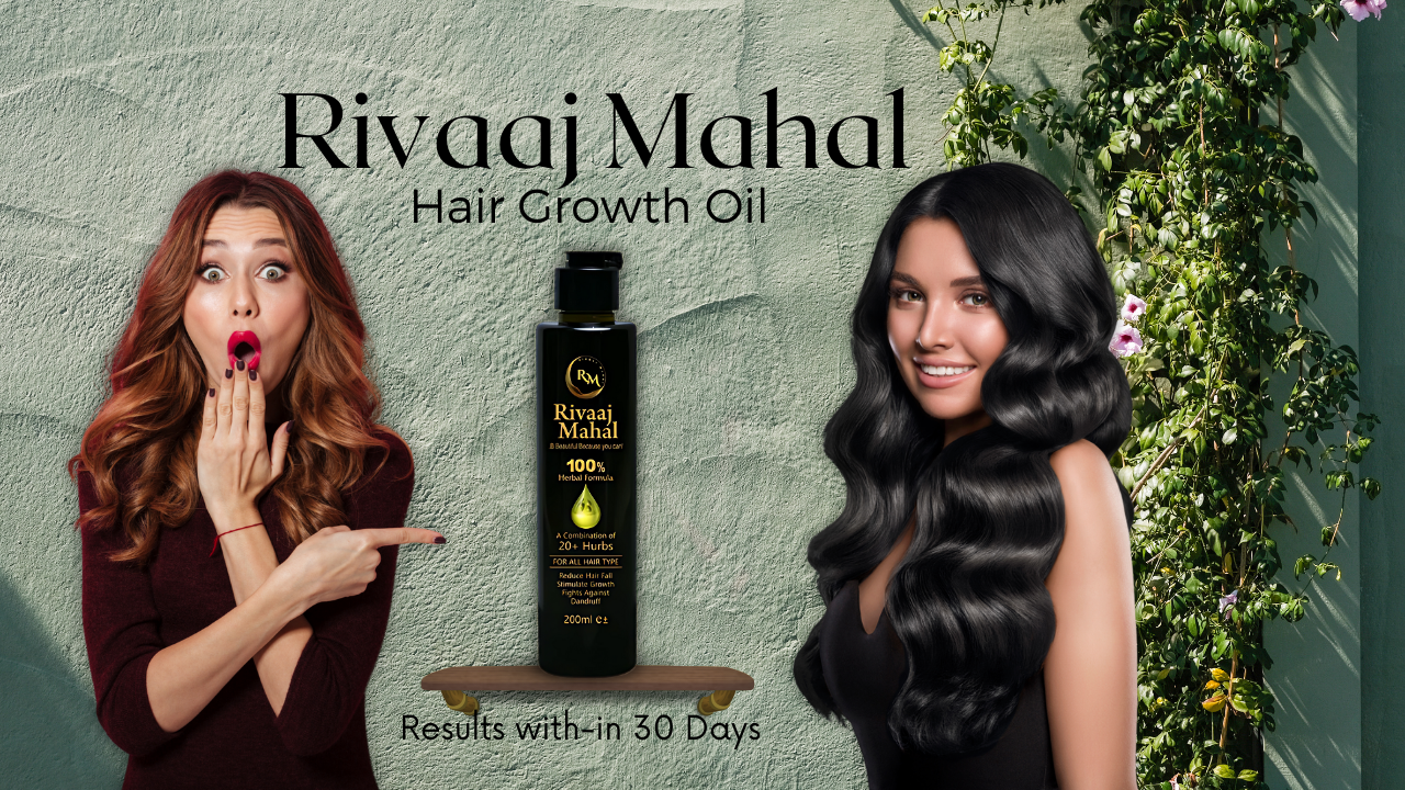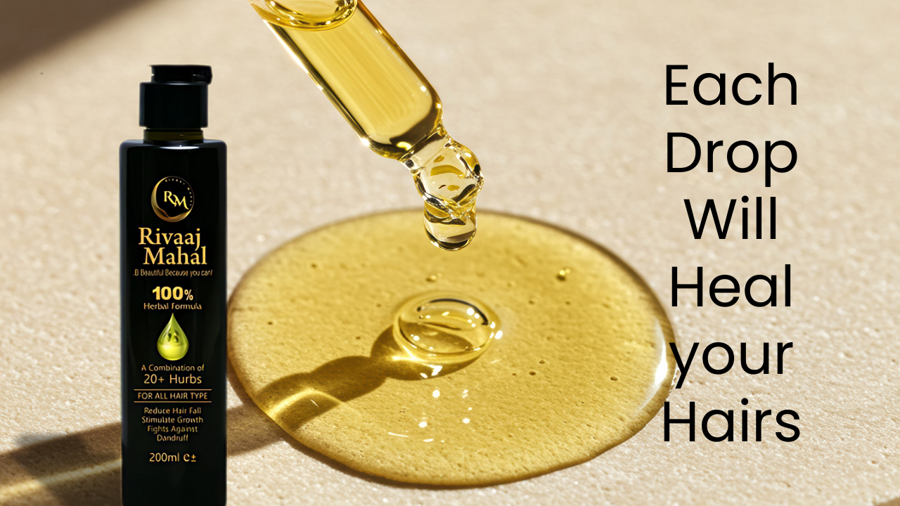 Discover the heritage of healthy, luscious hair with Rivaaj Mahal Hair Oil — a 100% natural, herbal solution for hair fall, dandruff, and scalp care.
